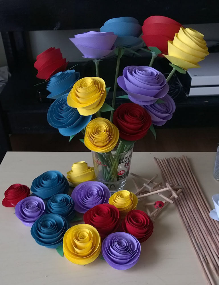 Paper Flowers : All hand props made from paper or made to look like found objects from the woods (pine cones, eggs, sticks, etc.)